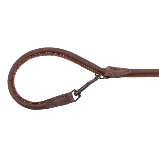 Diese schöne, samtig-weiche Führleine aus braunem Elchleder wird in der AKAH Sattlerei von Hand gefertigt. Das verwendete Elchleder stammt ausschließlich von wildlebenden Elchen aus Finnland und ist ökologisch gegerbt.