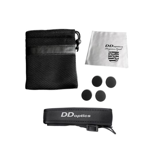 Fernglas, Trageriemen, Fernglastasche, Objektiv Schutzkappen, Okular Schutzkappen, Putztuch