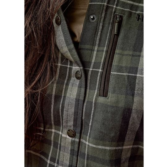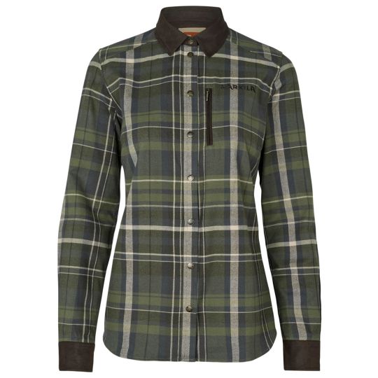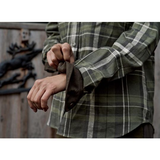 Das beliebte Härkila Pajala Jagdhemd ist jetzt auch speziell für Damen erhältlich: die Pajala Bluse ist aus dicht gewebtem Baumwollflanell gefertigt, das an kühlen Herbst- und Wintertagen für ein behagliches Plus an Wärme sorgt. Besonders beanspruchte Partien wie Kragen, Ellbogen und Manschetten sind mit attraktiven Besätzen aus Wildlederimitat verstärkt.