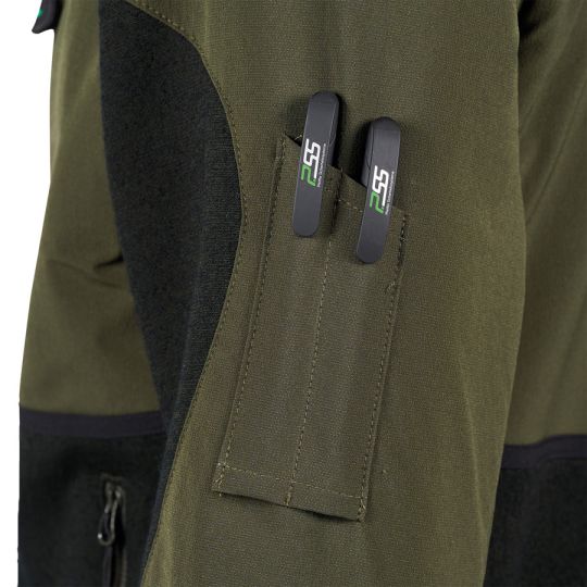 Die Jacken-Außenseite besteht aus einem strapazierfähigen Mix von Polyamid und Wolle – langlebig, wetterfest und ideal für den Einsatz im Gelände.